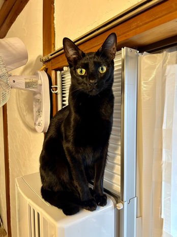 スリムな体にツヤツヤの黒い毛にがかっこいい黒猫くん。